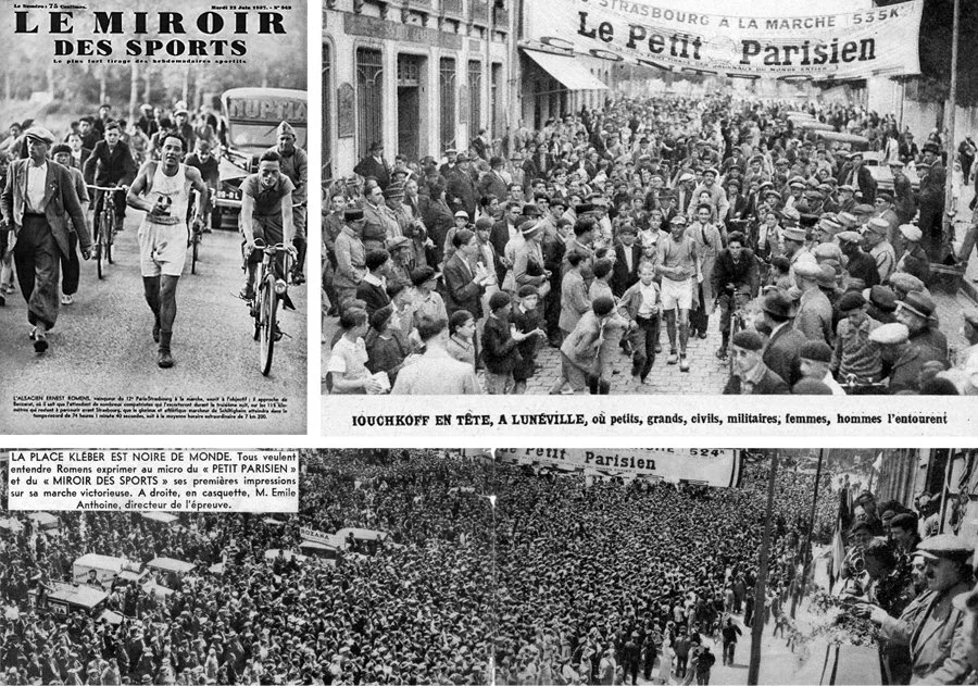 Le 28 Juillet 1926, cinquante marcheurs partaient de Paris, Place de la République pour rallier Strasbourg en marchant jour et nuit sans pratiquement aucun arrêt organisé. L’opinion publique, très étonnée, ne donnait que peu de chances aux concurrents d’arriver dans la capitale alsacienne, redevenue française depuis quelques années.